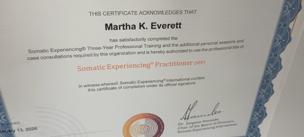 Martha Everett is a licensed massage therapist in NM since 2006, serving the different communities of Grant County; she is also a longtime Qigong enthusiast, experienced dog and cat companion, and is a Somatic Experiencing Practitioner.
